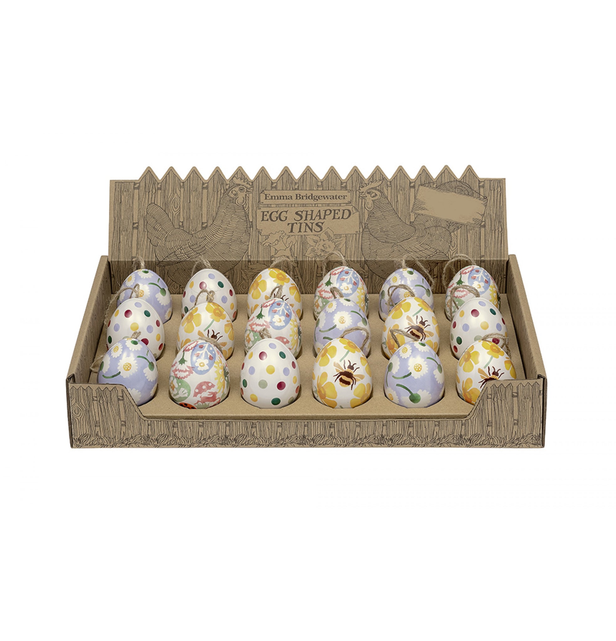 Choose from our assortment of delightful and very collectable Emma Bridgewater Egg Shaped Tins. Just the thing for your Easter Egg Hunts as you can fill with your choice of chocolate lollies, small gifts, messages or even home-baked treats!