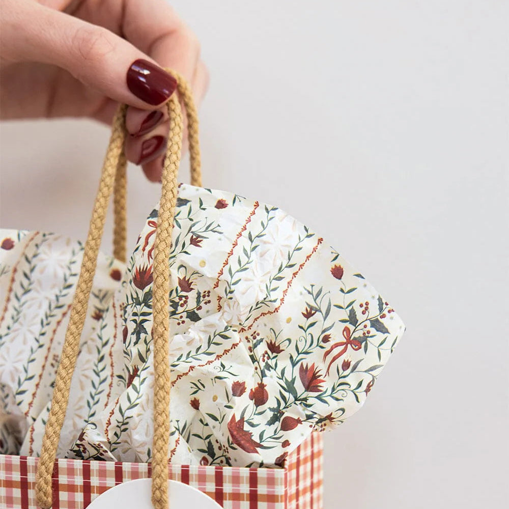 Festive Florals tissue paper, 4 pack, illustrated by Maja Lindberg.