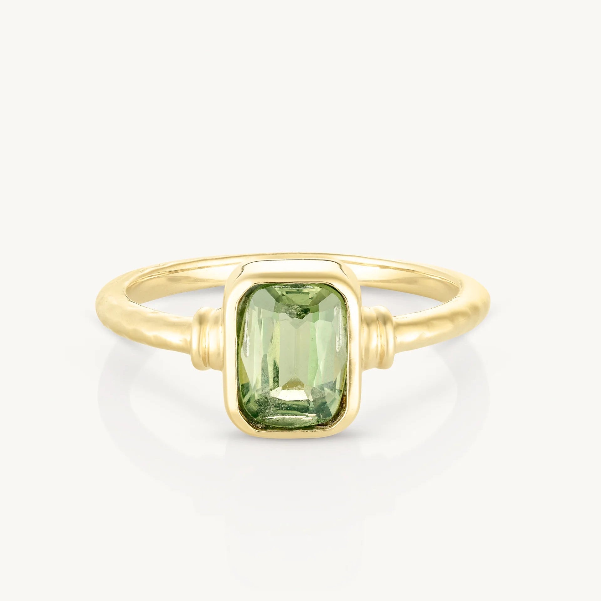 With a bezel-set baguette Apatite shining front and centre, framed by delicate linework on either side, it’s a band that stands beautifully on its own - but thrives in the company of a good stack.
