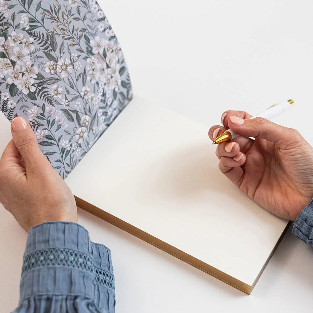 Illustrated by Vicky Lastra, featuring 100 heavyweight tear off blank pages. Bound with a gummed edge, and full heavyweight wrap around cover. Removable Gold Foil printed Bellyband and gold foil and gilded edges.