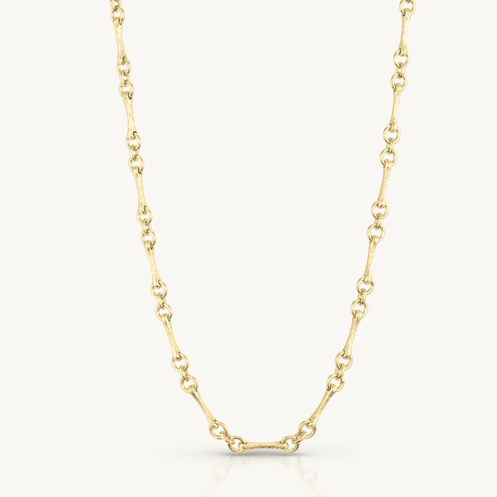 With lightly textured, organically shaped bars and round links, it layers effortlessly with your favourites or carries natural confidence all on its own