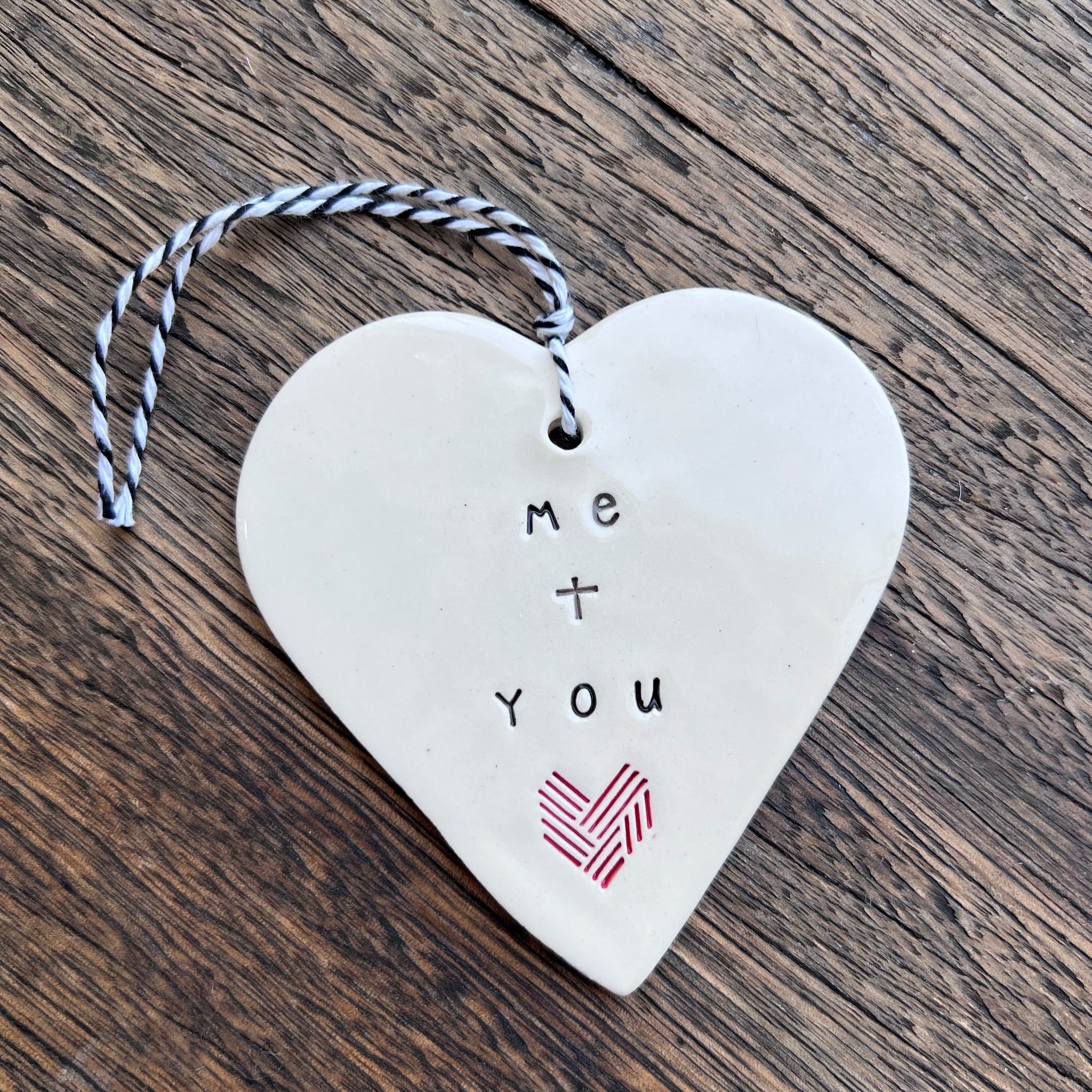 The Me + You ceramic tag is exclusive to Well Versed Homes, designed by Jo, and handmade in Queensland. Featuring our WVH heart icon and full glazed. You can add a message to the back of the heart using a sharpie pen if you wish.